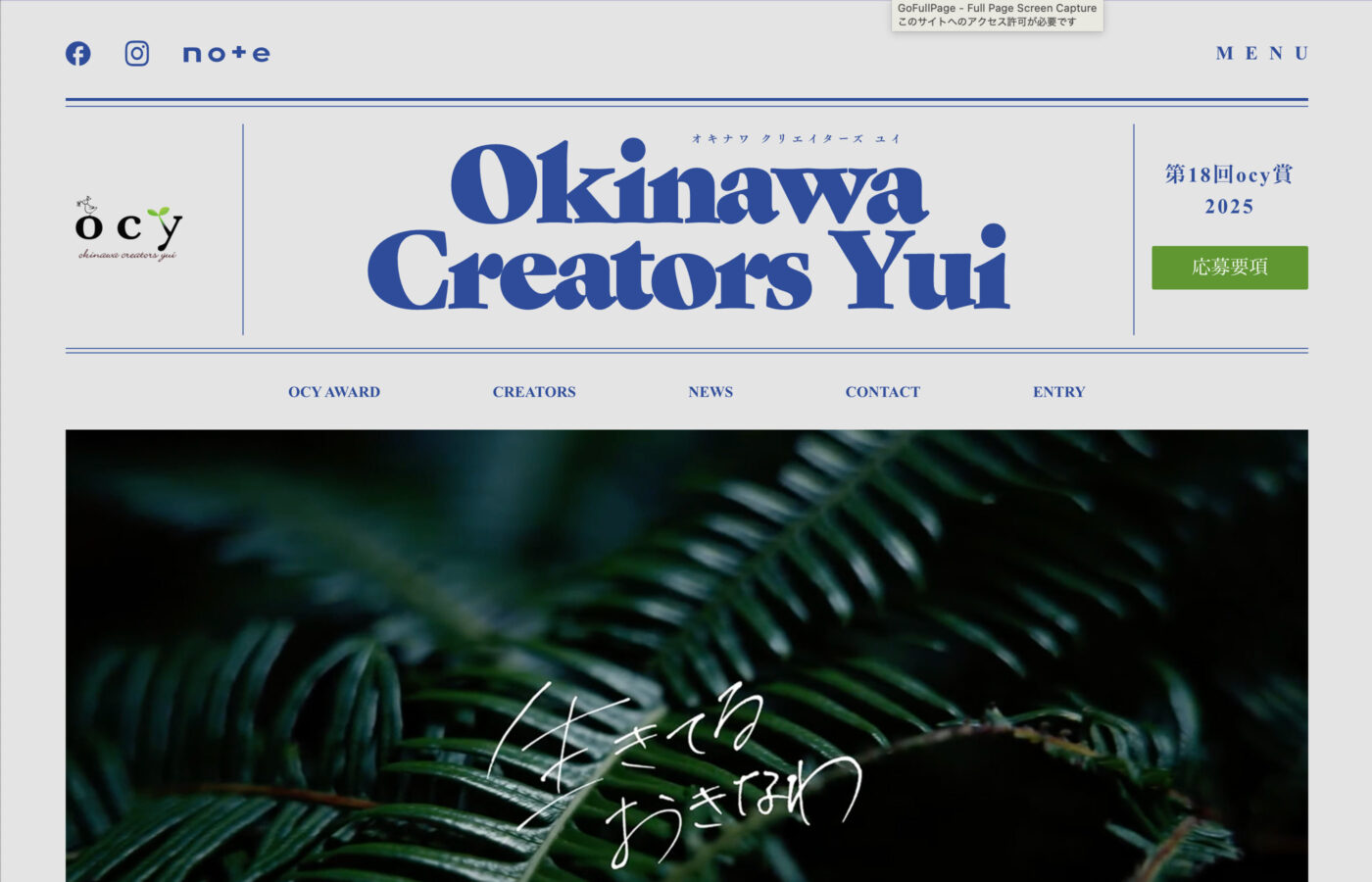 2サイト目は沖縄の広告クリエイターさん同士の交流とクリエイティブワークの向上を目的としたクラブのコーポレートサイト、オキナワクリエイターズユイ。