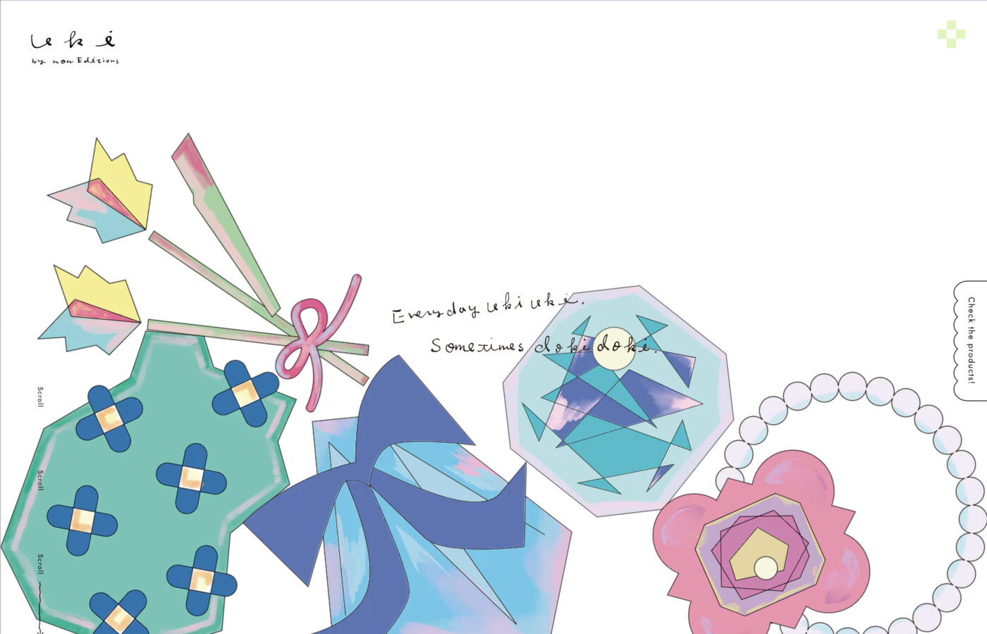 メモ風のコンテンツや、フッターに表示されるバーコード、レシート風の展開メニューなど、日常のモチーフをグラフィックとして巧みに取り入れながら、細やかでストレートな表現で作家性をしっかりと打ち出している点が印象的でした。