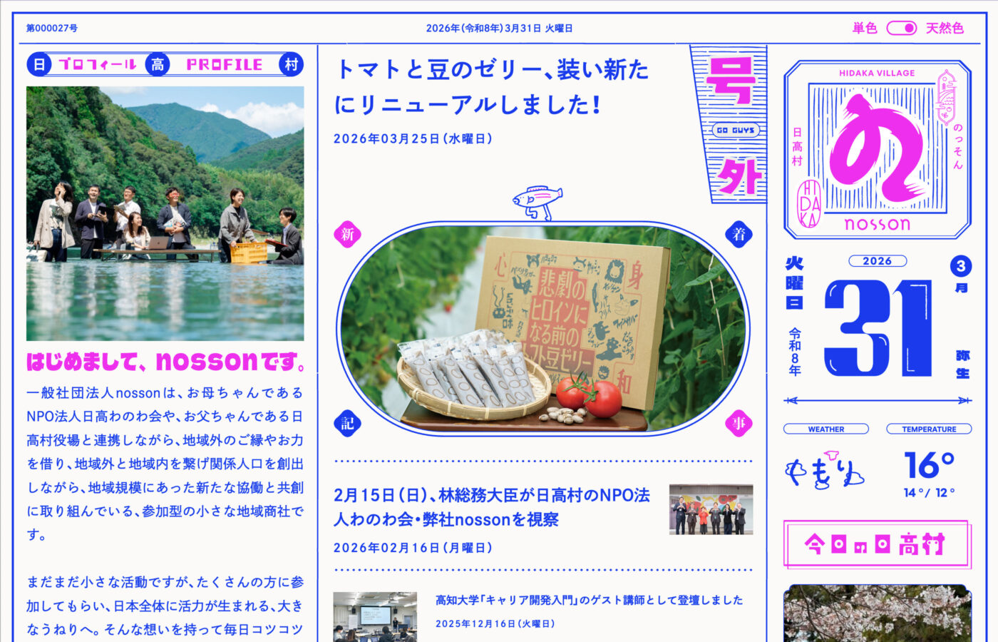 14つ目は、地域でさまざまな取り組みを行う一般社団法人nossonの活動を発信するコーポレートサイトです。